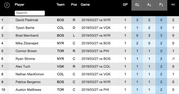 1. David Pastrnak a été tout simplement éblouissant avec une récolte de cinq points, incluant un tour du chapeau. Cette équipe, les Bruins de Boston, risque de surprendre lors des éliminatoires.