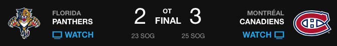 | 00:23 | MTL | Jeff Petry (5) Wrist shot – ASST: Lars Eller (12) |