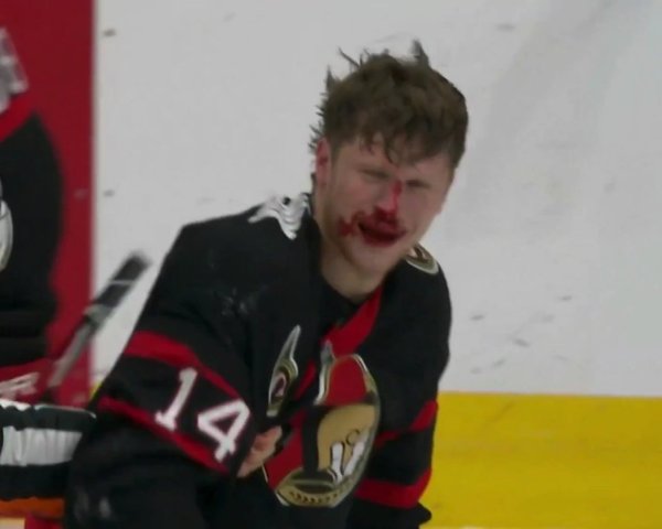 En fin de deuxième période du match entre les Canadiens de Montréal et les Sénateurs d'Ottawa, les partisans ont eu droit à tout un spectacle. Un spectacle ensanglanté.