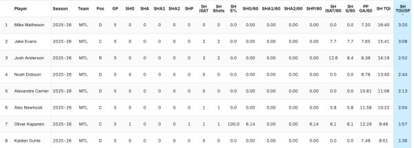 Tout ça fait donc en sorte qu'au lieu d'avoir ses cinq piliers en défensive (Guhle, Mike Matheson, Noah Dobson, Lane Hutson et Alexandre Carrier), le club en a soudainement quatre. Arber Xhekaj et Jayden Struble ne sont pas vilains, évidemment, mais il y a une raison pour laquelle les deux se battaient pour un poste (contrairement aux cinq autres).