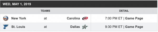🇨🇦📺: https://t.co/eVCyWTbCNm @Sportsnet pic.twitter.com/0SD3aydRz2— NHL (@NHL) 1 mai 2019