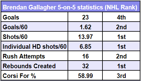 Silencieusement, Brendan Gallagher continue de prouver qu'il est l'un des joueurs les plus sous-estimés de la LNH. Chaque année, il y a quelques phases durant lesquelles on remarque particulièrement ce qui fait de Gallagher un excellent joueur, et nous plongeons présentement dans l'une d'elles.