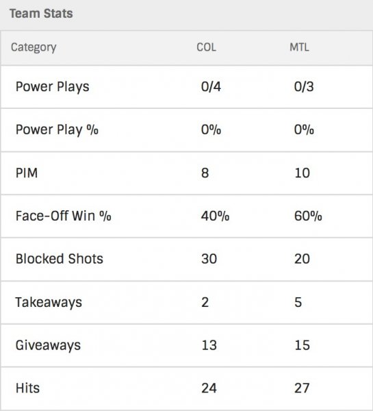 After the Cole hit, Habs players tried to get the Avs to fight. Three total penalties.