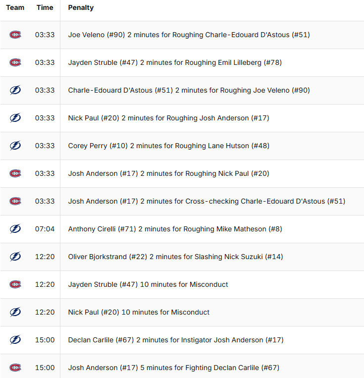 Cependant, ce que je retiens surtout du match d'hier soir, c'est le brio d'Adam Engstrom l'aspect intense et physique de la rencontre. Les arbitres ont décerné pas moins de 126 minutes de pénalité au total, dont la majeure partie en deuxième période.