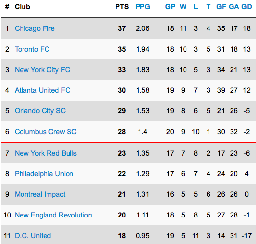 Qu'on regarde le classement ou qu'on jette un oeil aux différents matchs qui se jouent chaque semaine, il faut être réaliste, les 4 premières positions dans l'Est sont hors d'atteinte pour l'Impact. Toronto et Chicago batailleront pour le sommet, et parallèlement pour le Supporter's Shield, alors qu'Atlanta et New-York City FC devraient assez facilement s'assurer de l'avantage du terrain en match de barrage.