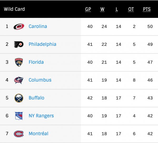 En résumé, la Flanelle est à cinq points des équipes repêchées ainsi qu'à six points du Lightning et du troisième rang de la section Atlantique.