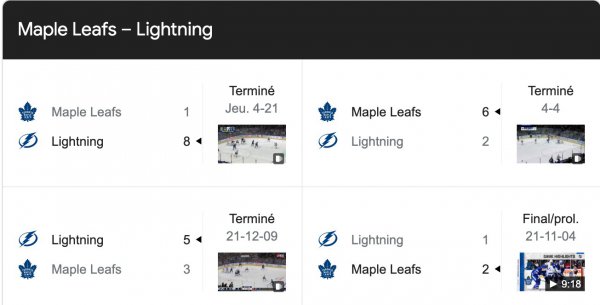 Notez bien que la dernière rencontre entre les deux équipes n'a pas été serrée du tout…