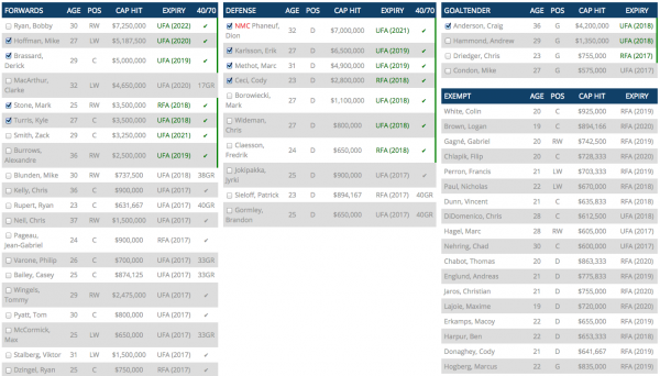 Ce n'est pas comme s'ils n'avaient pas de nombreux attaquants talentueux : cette formule rendrait Bobby Ryan, Jean-Gabriel Pageau et Zack Smith disponible. Fox mentionne que les Golden Knights ne voudraient pas toucher au salaire de Ryan, et que perdre Pageau ne ferait pas aussi mal que de perdre Marc Methot.