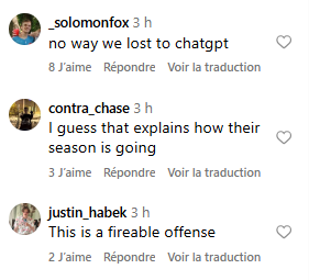 J'imagine qu'il essaie de trouver des façons afin de corriger la situation puisque son équipe est aussi au tout dernier rang au classement général de la Ligue nationale… mais jusqu'à preuve du contraire, l'intelligence artificielle ne te permet pas de gagner des matchs de hockey.