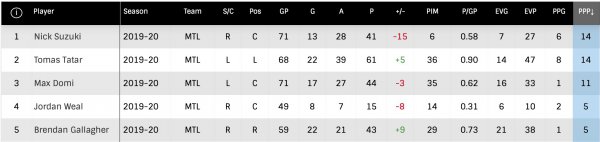2019-2020 : 1 but, 4 passes (Canadien : 22e dans la LNH en PP)