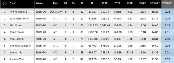 En consultant les statistiques en PP des attaquants du CH, pour la dernière saison, j'ai été surpris de constater que Weal a obtenu autant de points que Brendan Gallagher avec un homme en plus.