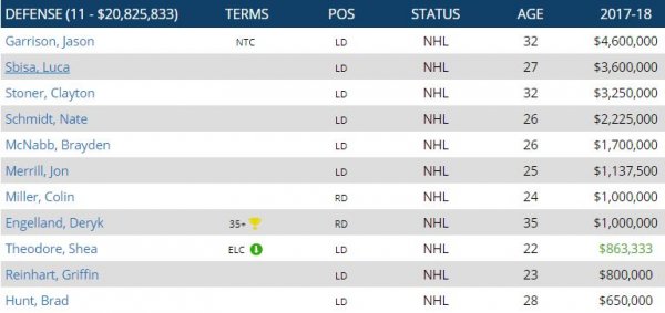La situation devient de plus en plus stupide, avec la mise sous contrat de Nate Schmidt. Et ce qui retient le plus l'attention, c'est qu'un seul de ces onze défenseurs est exempté du ballotage : Shea Theodore.