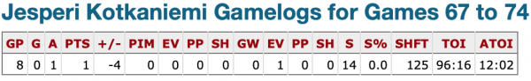 Avant le voyage en Californie, il passait en moyenne 14 minutes sur la glace. Depuis ce temps, son temps de jeu moyen a baissé de 2 minutes par match.