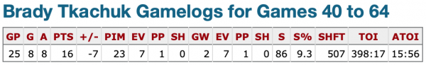 Sur la même note, Brady Tkachuk, repêché après Kotkaniemi, a aussi droit au même « traitement » que l'attaquant des Hurricanes. Son temps de jeu n'a pas été amputé depuis le match des Étoiles et il a continué de livrer la marchandise.