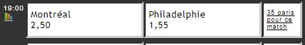 Je m'attends à un duel inégal et sincèrement, la cote de 1,55 des Flyers m'intéresse beaucoup. #Miseojeu