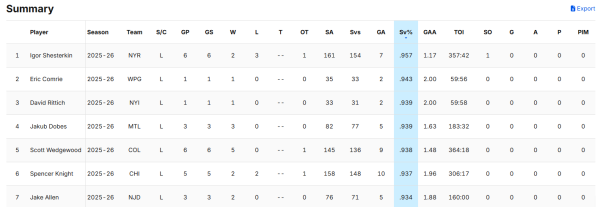 .939, pour un gardien qui a au moins deux matchs derrière la cravate cette saison, ça le place au deuxième rang de la LNH.