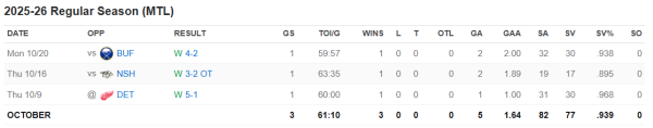 Hier, il a fait des arrêts importants qui ont permis au Canadien de rester dans le match. Et disons que le début de saison du club ne serait pas aussi prometteur s'il n'avait pas un taux d'efficacité de .939, l'un des meilleurs de la LNH.