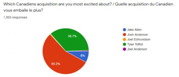 Au final, c'est sans surprise que l'attaquant Josh Anderson (celui qui arrivé de Columbus, juste pour être sur la même longueur d'onde) est le choix le plus populaire avec plus de 55 % des voix.