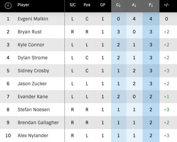 – Quatre mentions d'aide pour Evgeni Malkin :