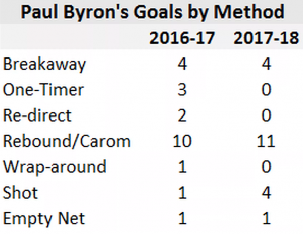 Voici justement de quelle façon Paul Byron a inscrit ses buts lors de ses deux dernières années.