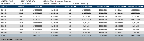 (Source : Cap Friendly)
