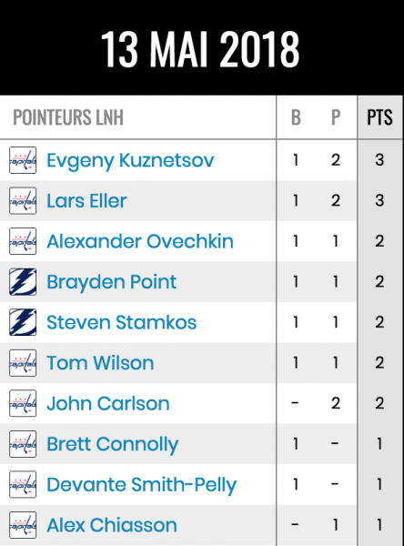 Alex Ovechkin est plus déterminé que jamais à soulever sa première Coupe Stanley en carrière. Le capitaine est en mission et cette fois-ci, il joue et il a du plaisir… la pression trop lourde, il est parvenu à la tasser. Cette équipe, personne n'en parle cette année, mais elle est toute une puissance. Même sans Nicklas Backstrom, elle performe à outrance. Un gain de 6-2 sur le puissant Lightning, où l'homme des grandes occasions, Lars Eller, s'est encore imposé.