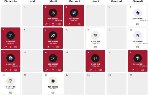 Et disons que dans les deux prochaines semaines, le Canadien va surtout jouer au Centre Bell.