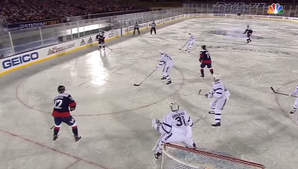 Vous avez sûrement entendu parler du match extérieur disputé au Maryland, hier soir. La rencontre à laquelle 29 000 personnes ont assisté opposait les Capitals de Washington, quatrième meilleure équipe de l'Est, aux Maple Leafs, qui se situent au troisième rang.