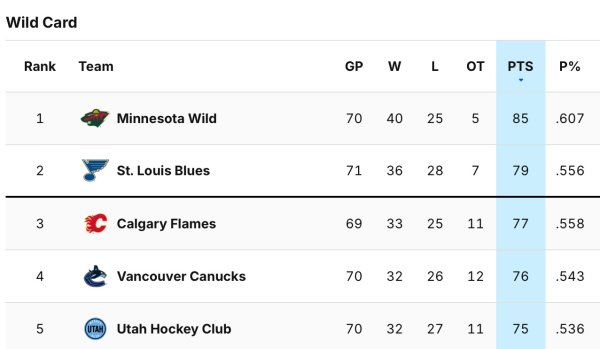 Dans l'Ouest, les Blues ont gagné à Chicago pour maintenir leur avance, et le nouveau Mammouth a battu le Lightning pour se garder dans la course. Ça donne ceci, en ce dimanche matin.