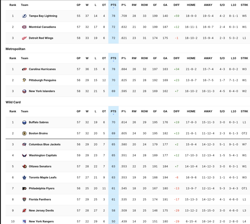 Prenons une pause des Jeux olympiques et prenons le temps de jeter un coup d'œil au classement dans l'Est.