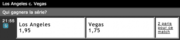Niveau cote, les Golden Knights sont évidemment légèrement avantagés en raison de leur position au classement, mais en réalité, les Kings ont probablement autant de chance de l'emporter. Ce sera une série intéressante, c'est le cas de le dire.