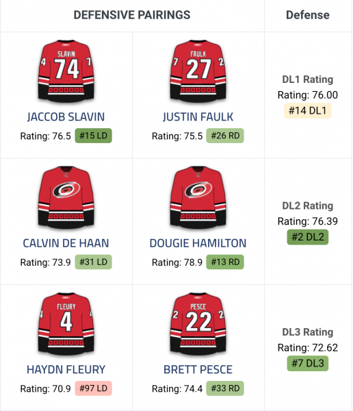 Actuellement, le portrait de la défensive des Hurricanes de la Caroline ressemble à ça :