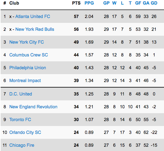Tout est désormais entre les mains de l'Impact qui détient une avance de 4 points sur DC United avec seulement un match de plus de joué. Toutefois, pour avoir regardé le match DC-NYRB, l'équipe qui me semble le plus en difficulté actuellement est l'Union de Philadelphie. L'Impact saura-t-il grimper jusqu'au 5e rang?