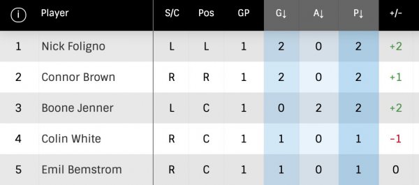 3. Ce type d'échec avant soutenu a permis à Nick Foligno d'enregistrer son 8e filet. Foligno a également fait scintiller la lumière rouge une seconde fois dans cette partie.