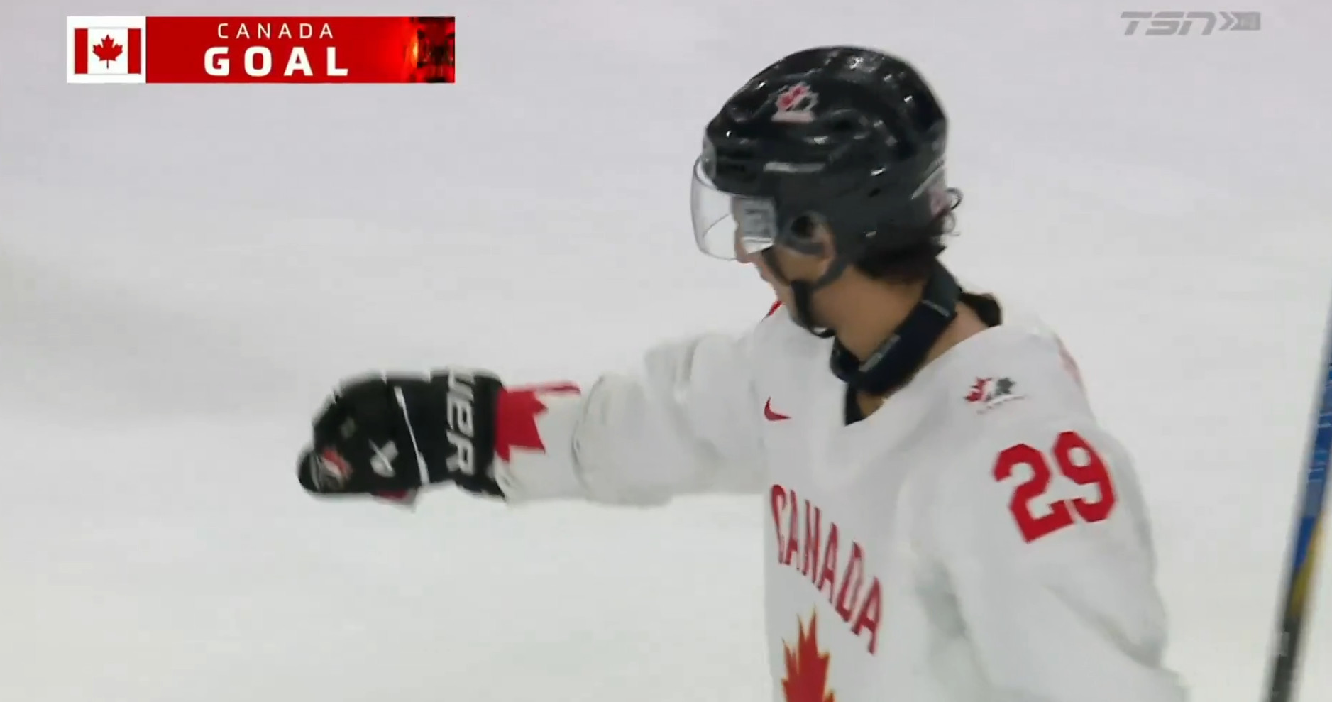Après une seule période de jeu, le joueur de centre comptait déjà deux points et il a terminé la rencontre avec un but et deux aides ainsi qu'un différentiel de +3. Il pourrait bien battre son total de cinq points en trois rencontres obtenu avec le Canada lors du dernier tournoi international.