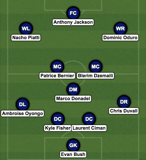 Avec ses performances très décevantes, j'aimerais mieux voir un autre joueur que Dominic Oduro sur la droite, mais l'absence de Ballou pourrait forcer sa titularisation. Biello pourrait bien y aller avec Lovitz, mais est-ce vraiment souhaitable? J'aimerais bien voir Choinière obtenir des minutes, mais peut-il jouer à droite? Et a-t-il la confiance de Biello?