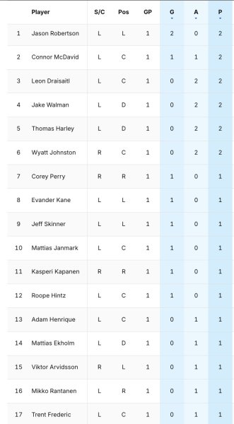 Deux buts sur deux tirs, la soirée de travail de Jake Oettinger était terminée. Il est devenu le sixième gardien de tous les temps à avoir commencé un match éliminatoire et l'avoir terminé sans un seul arrêt.