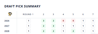 Le club est en train de vieillir, il n'y a pas énormément de profondeur dans la banque d'espoirs du club… et les Penguins ont seulement trois choix de première ronde en vue des trois prochaines années.