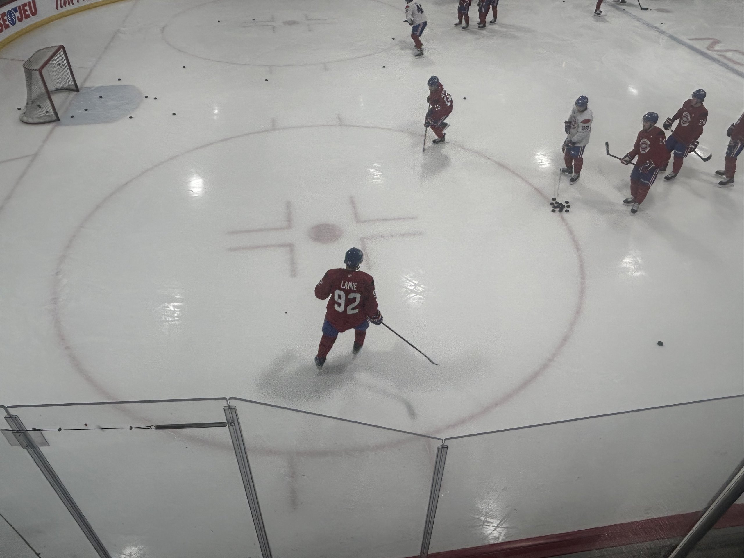 Ce que mon collègue Marc-Olivier Cook rapporte, c'est que Laine portait un chandail rouge à l'entraînement. C'est la même couleur que Nick Suzuki, Cole Caufield et Alex Newhook, notamment.