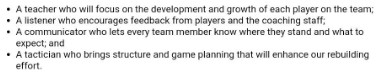 Voici les détails des critères pour le nouvel entraîneur de l'équipe.
