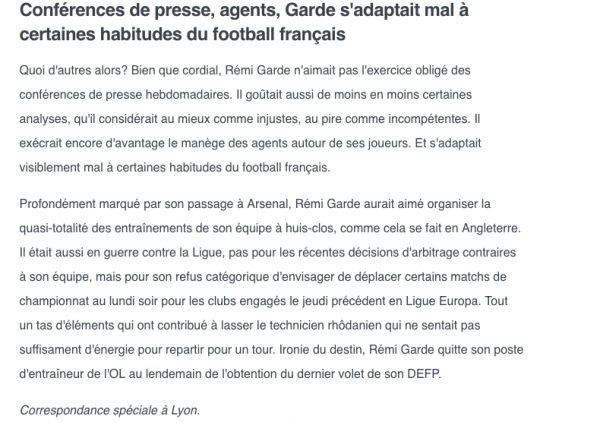 On retiendra beaucoup de son séjour à Lyon, tant comme entraîneur que comme formateur à l'Académie, où il a notamment aidé des Benzema, Lacazette, Pjanic, et j'en passe, à développer leur plein potentiel. Cela s'est traduit dans son style de manager, où il a su intégrer les jeunes de l'Académie dans son schéma et a maintenu l'OL dans le top 5 de la Ligue 1 malgré un budget très serré. Cette partie de son expérience sera très, très, importante à Montréal.
