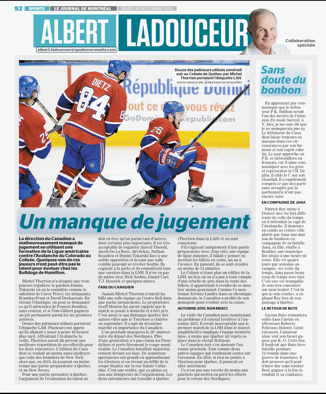 – Albert Ladouceur croit que la direction du CH manque de jugement! LIEN