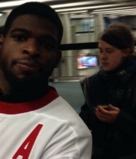 P.K. Subban a  profité de sa journée de congé pour aller se promener (sous la pluie) dans les rues de Montréal… Et dans son système de métro!