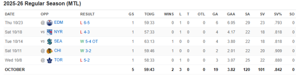 Montembeault, par la force des choses, aura de la pression sur ses épaules. Après tout, il n'a pas un excellent début de saison et les gens voulaient voir Jakub Dobes à la maison.