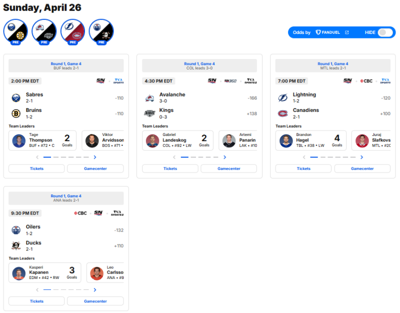— NHL Public Relations (@NHLPR) April 26, 2026