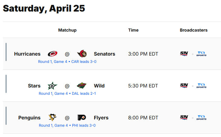 🇨🇦: @Sportsnet & @TVASports pic.twitter.com/eulNSRRsU6— NHL (@NHL) April 25, 2026