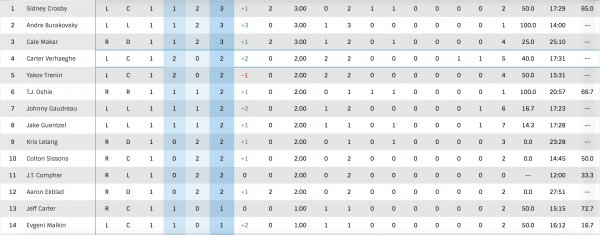 Mais les choses se sont rapidement gâtées pour les Rangers puisqu'ils ont accordé quatre buts consécutifs. Sur ces quatre filets, Sidney Crosby a inscrit trois points.