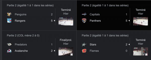 Encore une fois, quatre matchs étaient à l'horaire hier dans la LNH. Voici les résultats de la soirée: