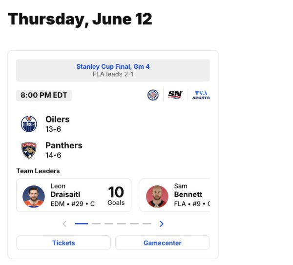Catch Game 4 of the #StanleyCup Final between the @EdmontonOilers and @FlaPanthers Thursday, June 12 at 8p ET on @NHL_On_TNT, @SportsonMax, @Sportsnet, and @TVASports! pic.twitter.com/tpbDbgQjpT