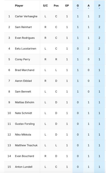 À un moment dans le match, la Floride menait 2-0, mais Corey Perry, qui a aussi jeté les gants contre personne plus tard, a réduit l'écart.